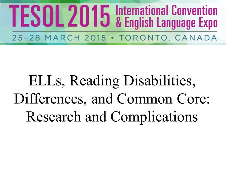 0425-001043 - ELLs, Reading Disabilities, Differences, and Common Core: Research and Implications