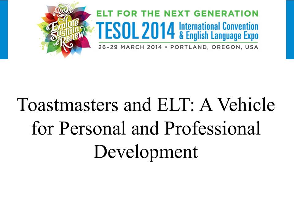 030 - Toastmasters and ELT: A Vehicle for Personal and Professional Development