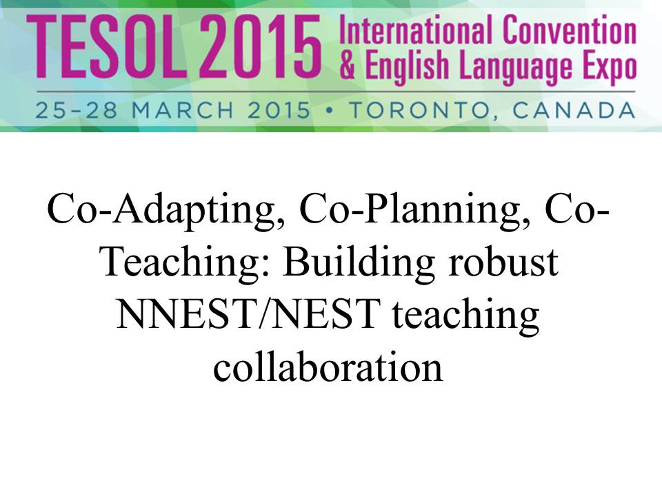 0425-000150 - Co-Adapting, Co-Planning, Co-Teaching: Building robust NNESTNEST teaching collaboration
